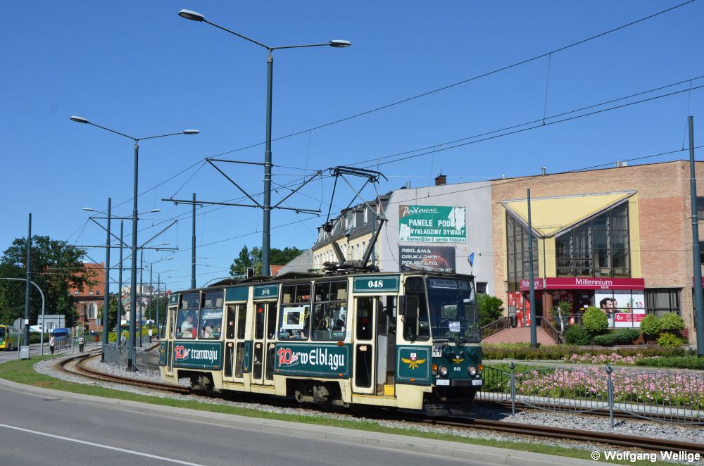 Die Stadt Elbląg (Elbing) liegt in Nordpolen und hat ca. 120.000 Einwohner. Sie hat ein kleines, aber feines Straßenbahnnetz mit einer Streckenlänge von insgesamt ca. 16 Kilometern. Die Bahnen verkehren auf meterspurigen Gleisen. Betreiber der Bahnen sowie der Stadtbusse ist die → ZKM Elbląg (Zakład Komunikacji Miejskiej w Elblągu).