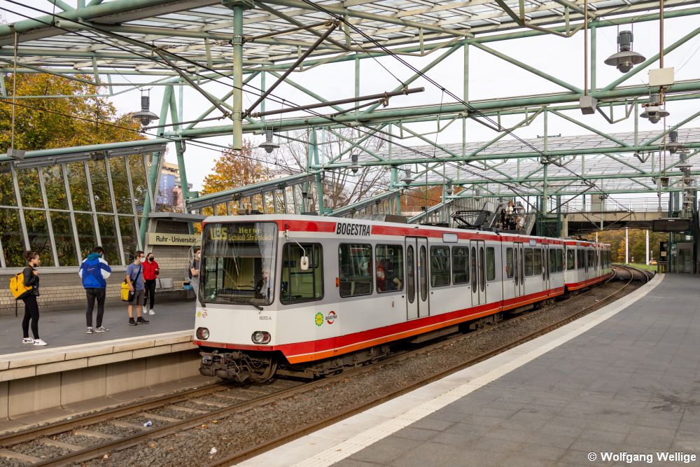 'Tango' Nummer 6030 ist am 28. Oktober 2022 auf dem oberirdischen Teil im Süden der Linie U35 unterwegs und erreicht in Kürze die Station Ruhr-Universität