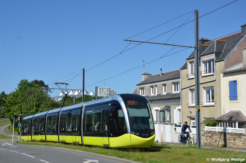 Die Straßenbahn Brest (Bretagne, ca. 150.000 Einwohner) wurde im Juni 2012 nach 68-jähriger Abstinenz wieder eröffnet. Sie hat zurzeit eine Strecke (Linie A) mit zwei Ästen im Osten und einer Länge von 14,3 Kilometern. Die Fahrzeuge wurden gemeinsam mit Dijon beschafft, weswegen sie bis auf die Farbgebung unterhalb der Fenster identisch sind. Außerdem wurde in Brest im November 2016 Frankreichs erste urbane Seilbahn eröffnet, die als Linie C bezeichnet wird und mit den Fahrscheinen der Tram genutzt werden kann (eine Straßenbahnlinie B ist in Planung, deswegen wurde der Buchstabe freigehalten). Betrieben werden alle drei Verkehrsmittel unter dem Markennamen → Bibus.
