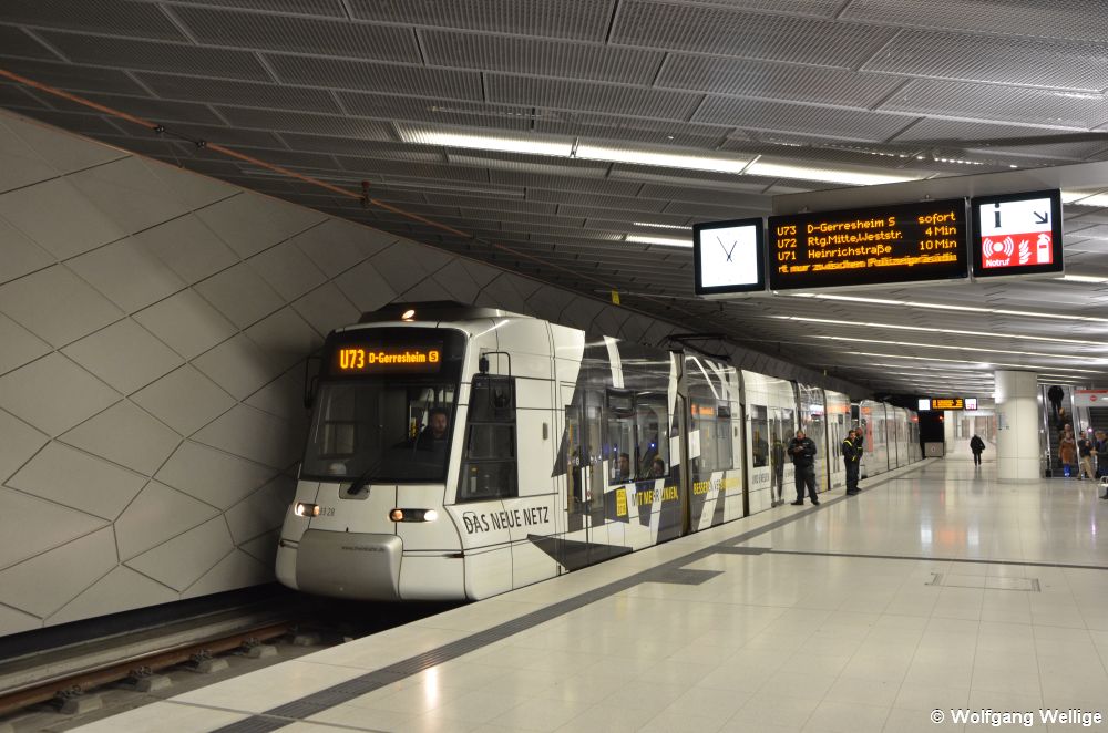 Die nordrhein-westfälische Landeshauptstadt verfügt über ein Niederflur-Straßenbahnsystem mit einer Ausdehnung von ca. 50 Kilometern sowie ein Hochflur-Stadtbahnsystem mit einer Streckenlänge von ca. 70 Kilometern. Zwei Stadtbahnlinien verbinden das Düsseldorfer Netz mit benachbarten Verkehrsbetrieben: Die Stadtbahnlinie U79 verbindet Düsseldorf mit Duisburg, auf dieser Linie sind auch Stadtbahnwagen der DVG Duisburg anzutreffen. Die Linie U76 stellt die Verbindung mit Krefeld her. Da die Krefelder Straßenbahn auf Meterspur fährt, kann sie in Krefeld jedoch nur auf der Strecke zur Rheinstraße fahren, die dafür mit einem Vierschienengleis ausgestattet ist. Die Düsseldorfer Straßenbahn fährt außerdem die Nachbarstadt Ratingen an.