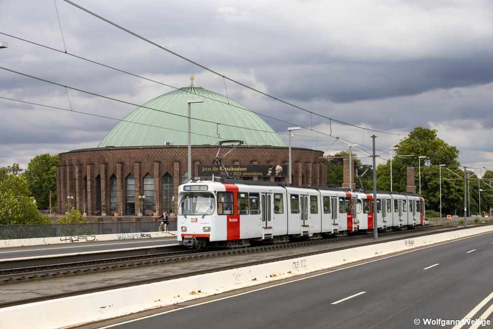 Eigentlich sollte der ab 1973 gebaute Fahrzeugtyp GT8SU zum Aufnahmezeitpunkt bereits ausgemustert sein, doch die deutlich verzögerte Inbetriebnahme der neuen HF6 sorgte dafür, dass Wagen 3214 am 26.07.2022 noch seine Runden auf der Linie U75 drehen durfte, aufgenommen an der Tonhalle.
