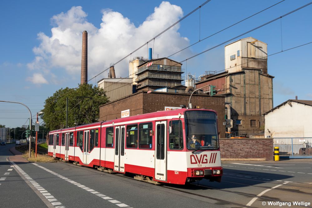 Seit 2023 sind in Duisburg die Niederflurfahrzeuge NF4 von Bombardier im Einsatz, am 17.07.2024 erreicht Wagen 2015 gleich die Haltestelle Emilstraße.