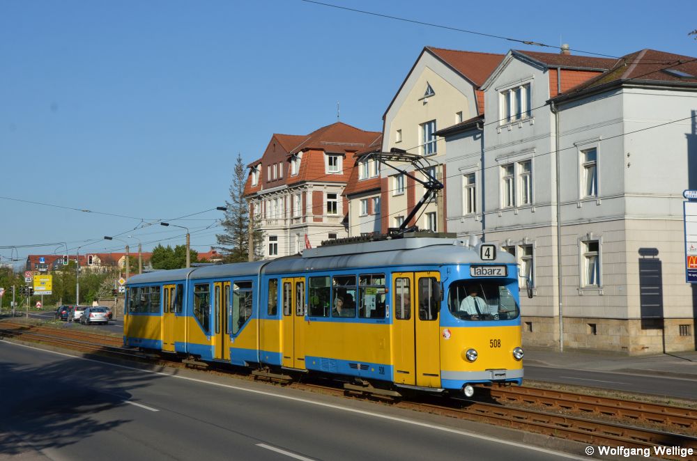Am Abend des 07.05.2016 fährt der ex-Mannheimer Wagen 508 auf der Gartenstraße kurz vor der gleichnamigen Haltestelle durch Gotha Richtung Tabarz