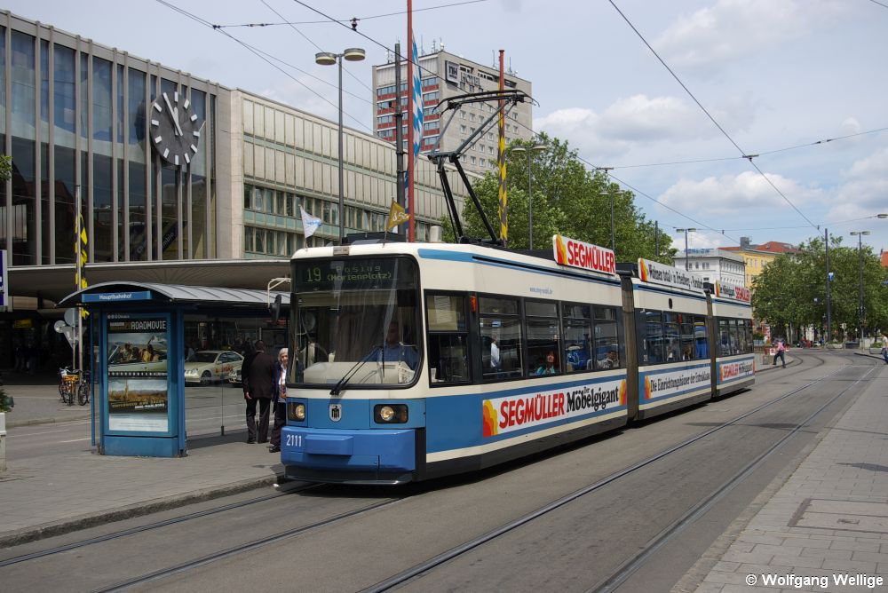 Der R2.2 Nummer 2134 musste am 11. September 2011 als Stadtrundfahrt "MünchenTram" einspringen, da der eigenlich hierfür vorgesehene M-Wagen 2412 defekt war, aufgenommen am St.-Martins-Platz.
