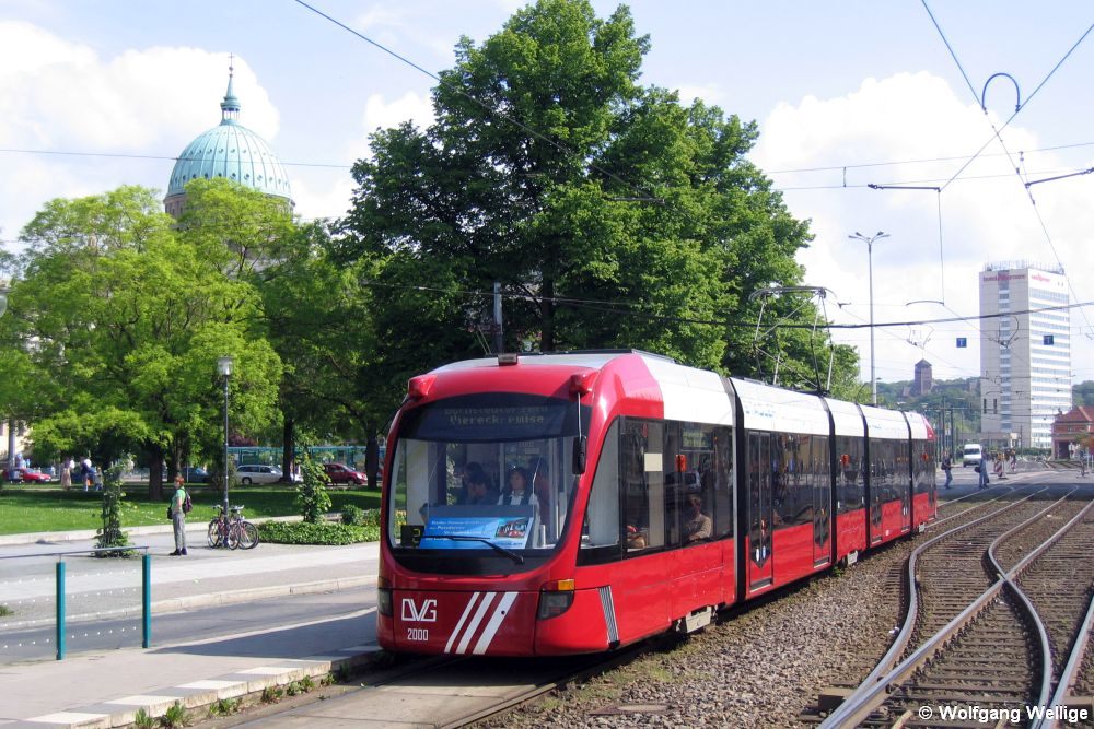 Im Mai 2005 wurde in Potsdam der Prototyp der Variobahn, Wagen Nummer 2000 der Duisburger Verkehrsgesellschaft, für einige Tage probeweise im Linienbetrieb eingesetzt. Aus diesen Tests resultierte die Bestellung von Variobahnen bei der Firma Stadler. Am 22.05.2005 fährt die Variobahn aus Duisburg in die Haltestelle Platz der Einheit ein.