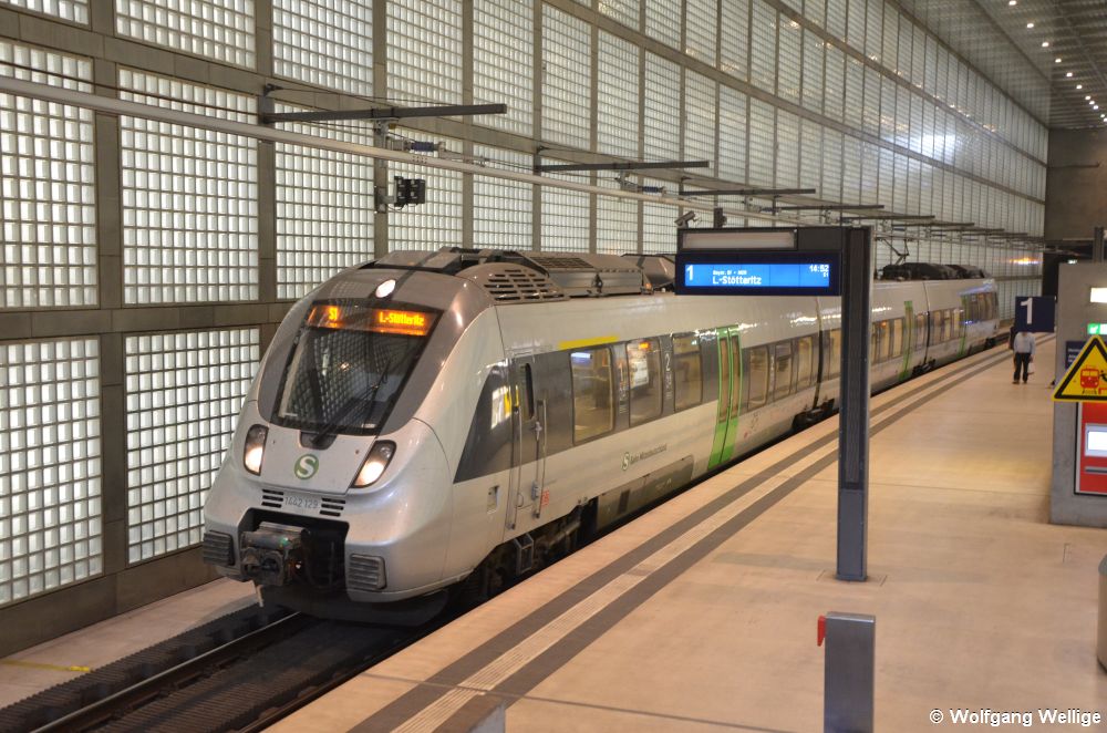 1442 129 hält am 17.10.2018 als S1 nach Leipzig-Stötteritz in der Station Wilhelm-Leuschner-Platz, die im Ende 2013 eröffneten City-Tunnel Leipzig liegt.