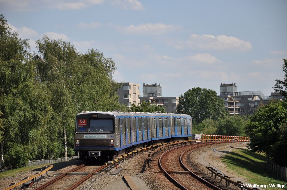 Auf der ehemaligen Zweisystem-Metro 51 ist Wagen 70 am 30.05.2011 im Straßenbahn-Abschnitt unterwegs, hier kurz vor der Station De Boelelaan.