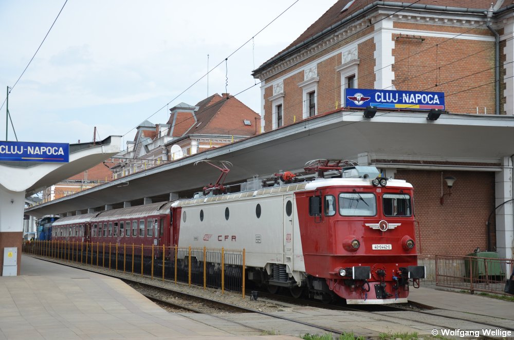40-0442 der rumänischen Staatsbahn CFR hat am 30. April 2014 gerade den Regionalzug R 4305 von Dej Calatori nach Cluj-Napoca gebracht