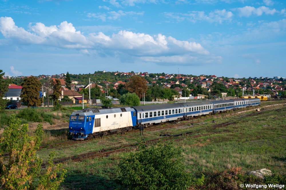 Am Abend des 13. September 2025 ist die Diesellokomotive 640 947 gerade in Oradea mit dem Nachtzug IRN 1744 zur Fahrt in die Hauptstadt Bukarest (București Nord) aufgebrochen. Der Zug wird ab Arad deutlich länger, denn dort wird er mit dem Nachtzug von Budapest nach Bukarest zusammengekuppelt.