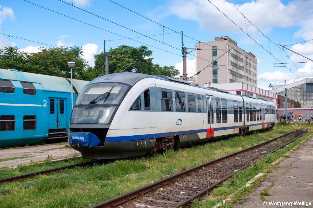 Der von Siemens produzierte 'Desiro'-Triebwagen 96-2077 der CFR wartet am 2. Juni 2010 im Bahnhof Craiova auf seinen nächsten Einsatz.