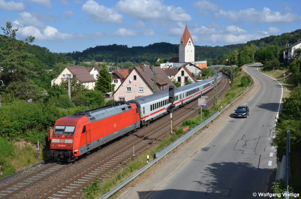 101 096 fährt mit IC 2265 von Karlsruhe nach München am 15. Juni 2014 durch den Ort Lonsee in der Nähe von Ulm