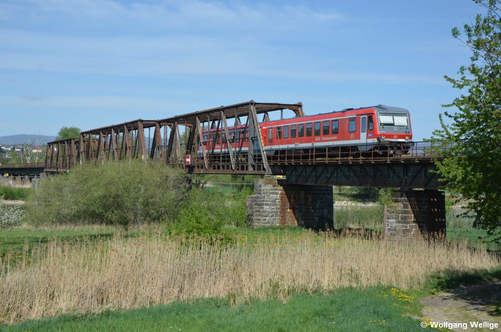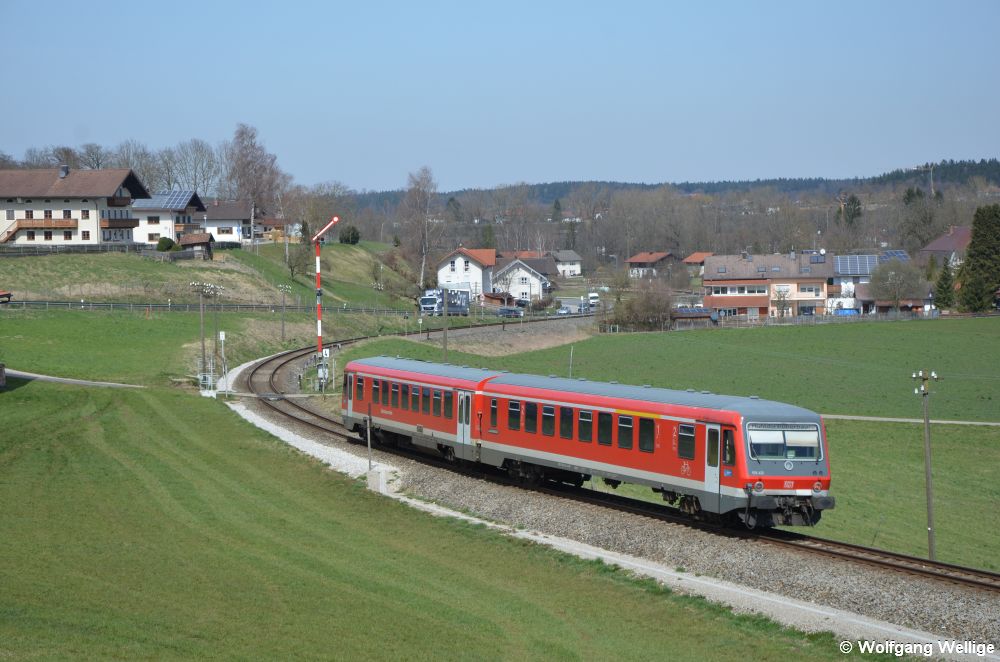 628 576 hat am 25.04.2020 gerade hinter Bogen die Donau überquert und erreicht in Kürze den Haltepunkt Sand (Niederbayern)