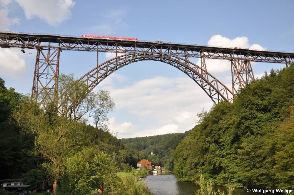 628 533 überquert am 9. August 2010 als RB 47 von Wuppertal nach Solingen bei Solingen-Schaberg die Müngstener Brücke, mit 107 Metern Höhe Deutschlands höchste Eisenbahnbrücke