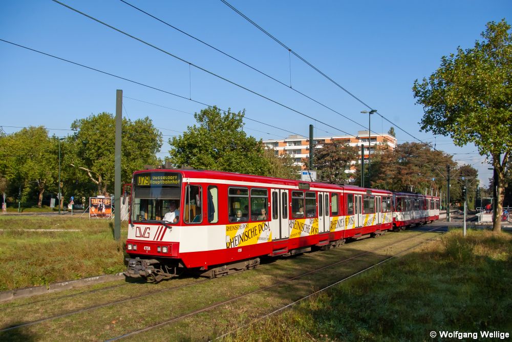 Die Stadtbahnwagen Typ B80C werden der bei der DVG ausschließlich auf der Linie U79 im Gemeinschaftsbetrieb mit der Düsseldorfer Rheinbahn eingesetzt wird. Wagen 4704 hat am 25. September 2009 gerade die Haltestelle Freiligrathplatz in Düsseldorf verlassen.