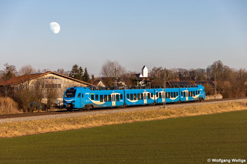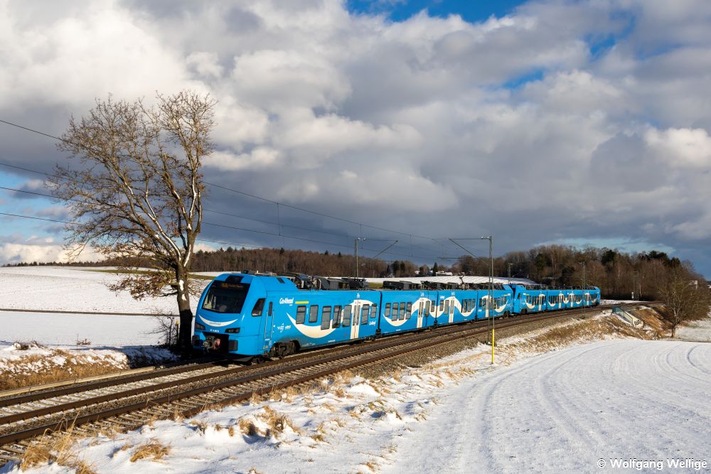 Im Dezember 2021 übernahm Go-Ahead Bayern die Regionalzugleistungen auf der Strecke München-Memmingen-Lindau von DB Regio. Am 8. Januar 2022 ist der 'FLIRT'-Triebzug ET 4.40 vor einer spektakulären Wolkenkulisse bei Grafrath als RE 96 auf dem Weg von München nach Lindau-Reutin.