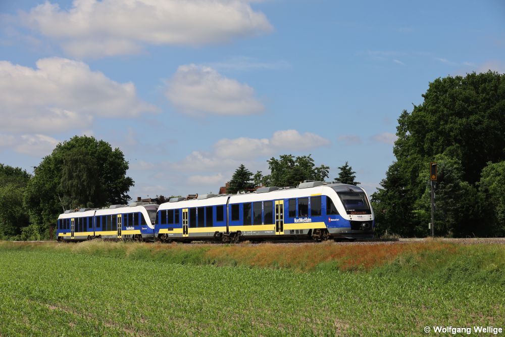 Die Dieseltriebwagen der LINT-Familie wurden ursprünglich von Linke-Hofmann-Busch (LHB) entwickelt und ab 1999 gebaut. Seit der Übernahme durch Alstom wird der Typ als Alstom Coradia LINT vermarktet, wobei LINT ausgeschrieben für "Leichter, innovativer Nahverkehrs-Triebwagen" stehen soll. Die ab 2012 gebauten LINT-Triebzüge unterscheiden sich deutlich von ihren Vorängern. Auffälligstes Unterscheidungsmerkmal ist die neu gestaltete Front. Fotos dieser Fahrzeuge sind → hier zu finden. Außerdem gibt es seither eine verlängerte Variante mit zwei Drehgestellen unter jedem Wagenteil statt Jakobsdrehgestellen, Bilder von diesen LINT 54 bzw. 81 genannten Fahrzeugen sind → hier zu finden.
