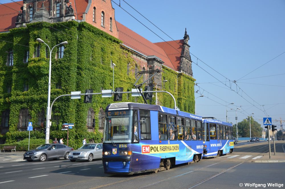 Wrocław (deutsch: Breslau) liegt in Niederschlesien im westlichen Teil Polens und hat gut 600.000 Einwohner. Die Stadt hat ein sehr engmaschiges, normalspuriges Straßenbahnnetz mit einer Streckenlänge von insgesamt ca. 85 Kilometern. Betreiberin ist die → MPK Wrocław ("Miejskie Przedsiębiorstwo Komunikacyjne Sp. z o.o. we Wrocławiu").